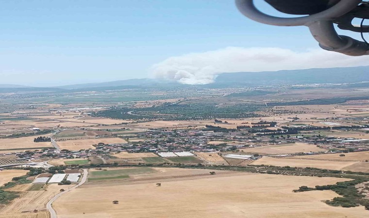 Yangın, saat 13.00 sıralarında sıralarında ilçeye bağlı Karacadağ mevkiinde bulunan ormanlık alanda çıktı. Henüz bilinmeyen bir sebeple başlayan yangına İzmir Orman Bölge Müdürlüğü ekipleri; 4 uçak, 8 helikopter, 25 arazöz, 6 su ikmal ve 4 dozer aracı ile müdahale ediyor. Ekipler yangını kontrol altına alma çalışmalarını sürdürüyor.