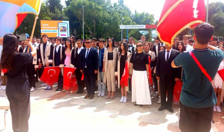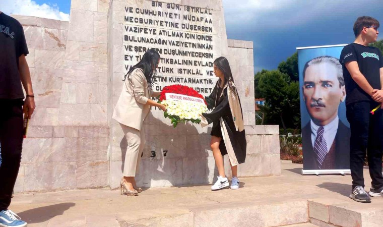 Çelenk sunma töreninde konuşma yapan Menteşe Anadolu Lisesi Müdür Yardımcısı Nerdem Özcan, okulun ilk mezunlarını vermesinin onurunu ve gururunu yaşadıklarını ifade ederek, "Menteşe Anadolu Lisesi olarak ilkini gerçekleştirdiğimiz yeni hayatımızın ilk veda yürüyüşümüzü tamamlamak, başlangıçlarına ’Merhaba’ demek için ulaştığımız bugünde, Ata’mızın huzurunda büyük bir gurur, büyük bir onur duyduğumuzu göstermek için buradayız. Bu Türk Gençliği olarak, Atatürk ilke ve inkılaplarının, bize emanet edilen Cumhuriyetin yılmaz bekçileriyiz. Sorumluluk bilinciyle, durmadan, yılmadan yürüyeceğimize söz vermek için buradayız" dedi.