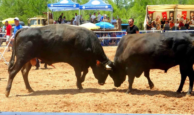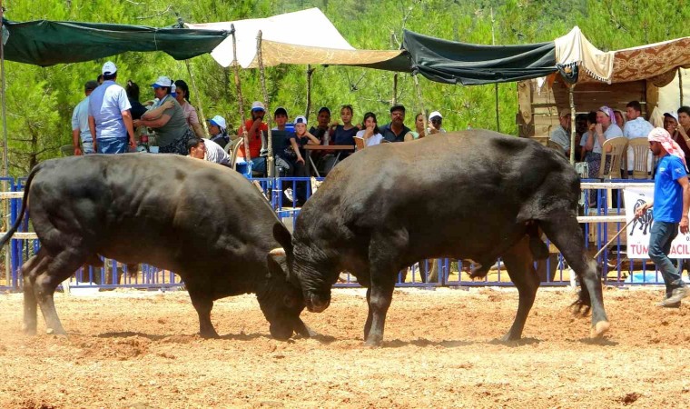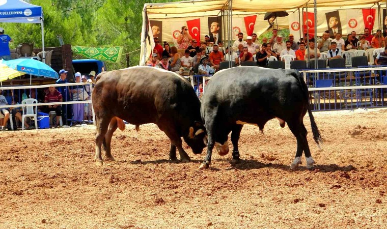Muğla’nın Menteşe ilçesinde bu yıl 10’uncusu düzenlenen boğa güreşi festivalinde boğalar kıran kırana mücadele etti.