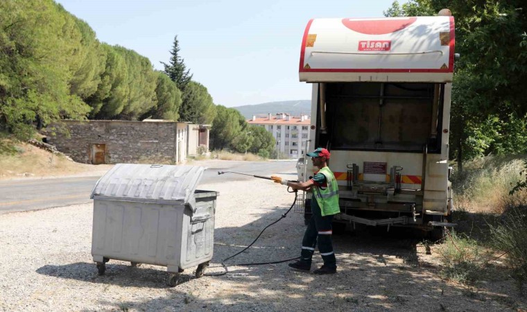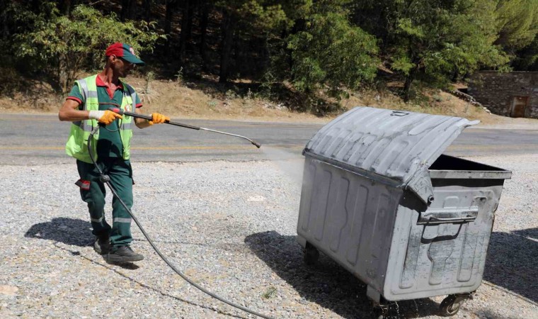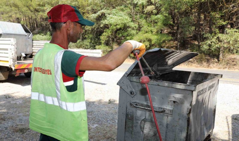 Menteşe Belediyesi, yaz döneminde çöplerden oluşabilecek kötü koku ve kirliliğe karşı çöp konteynerlerini yıkama ve temizleme işlemine hız verdi.