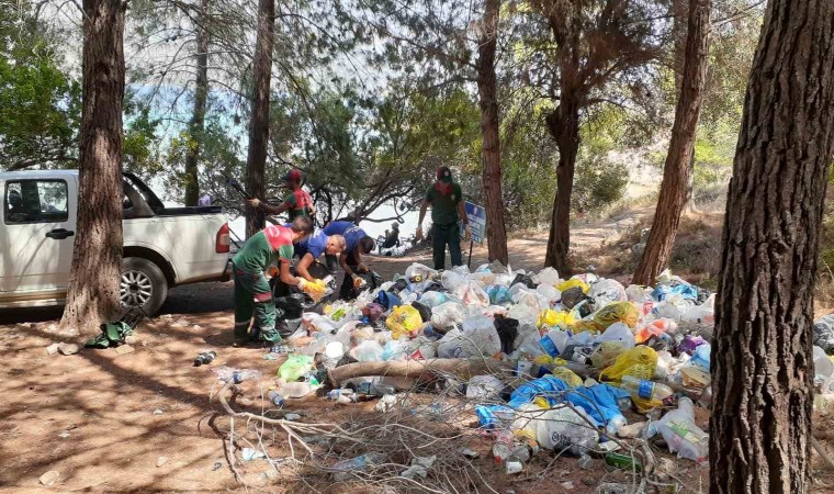 Menteşe Belediyesi ekipleri Muğla Büyükşehir Belediyesi ekipleri ile birlikte Akbük koyunda temizlik çalışması yaparak toplam 2 ton çöp topladı.