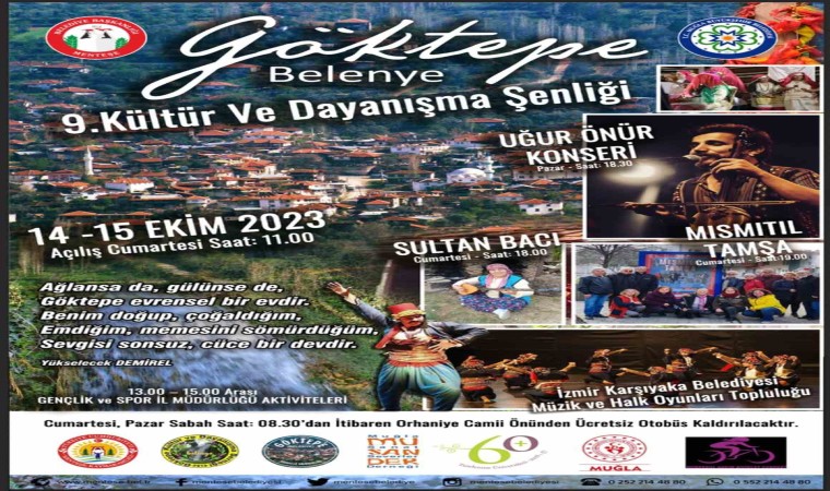 Menteşe bu hafta sonu düzenlenecek şenlik ve festival ile renkli görüntülere sahne olacak. Etkinlikler 14-15 Ekim tarihlerinde 9.’cusu düzenlenecek olan ve saat 11.00’de Göktepe Sosyo Kültürel alanda başlayacak olan Göktepe Belenye 9. Kültür ve Dayanışma Şenliği ile başlayacak. Kortej yürüyüşü ile start alacak olan şenlik çerçevesinde; dans oyunları gösterileri, yöresel ürünlerin tanıtım ve satışı, spor etkinlikleri, konserler ve tiyatro gösterisi yer alıyor.
