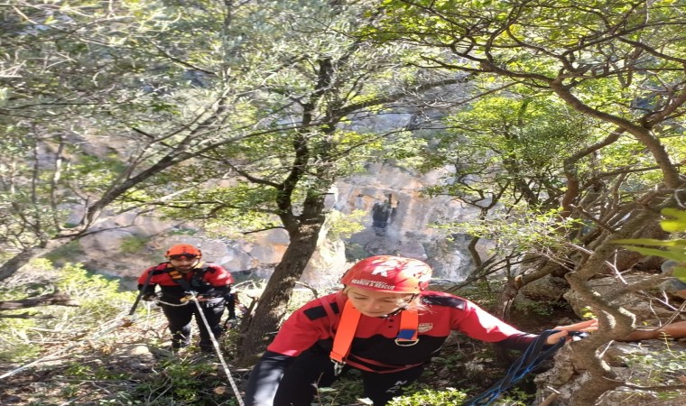 Muğla’nın menteşe ilçesinde bir kanyondaki kayalıklarda mahsur kalan keçi kurtarıldı.