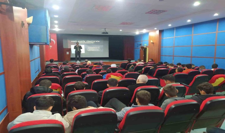 Menteşe İlçe Müftülüğü, Gençlik Koordinatörlüğü ve Muğla Şehit Mehmet Çetin İmam Hatip Lisesi Müdürlüğü tarafından öğrencilere "Kudüs Bilinci" konulu konferans düzenlendi.