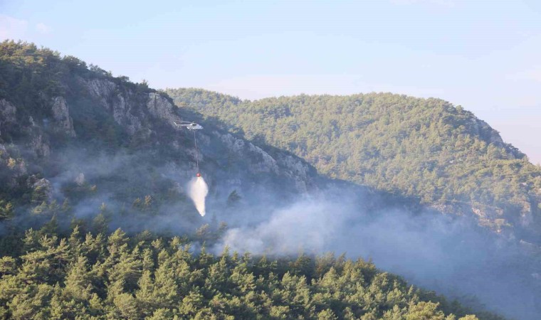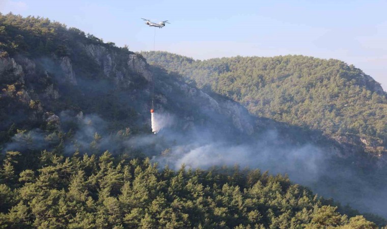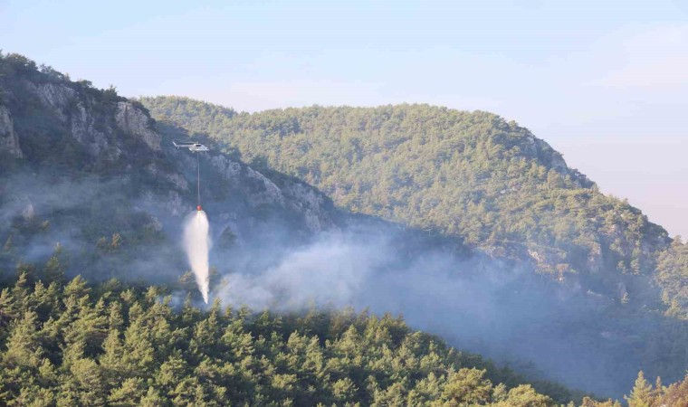 Muğla’nın Menteşe ilçesindeki orman yangını 20’nci saatine girerken, sarp arazide süren yangını kontrol altına almak için hava araçları yoğun şekilde müdahale ediyor.