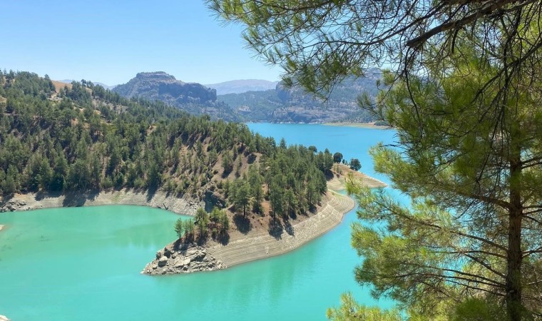 Kahramanmaraş’ta yeşil ve mavi tonlarını sergileyip cezbeden Menzelet Barajı, vatandaşların ilgisini çekiyor.