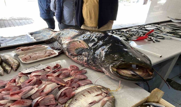 Uzun uğraşlar sonucu yayın balığını kıyığa çıkarmayı başaran amatör balıkçılar, tuttukları dev balığı Uzunköprü’ye getirerek balıkçıya sattı. Balıçı Ahmet Tosun, satın aldığı 65 kilogramlık balığı tezgahında sergilemeye başladı.