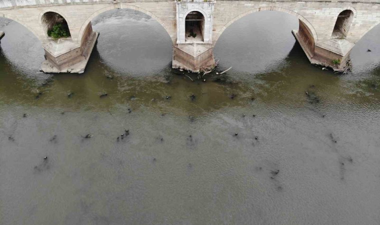 Edirne’nin adeta can damarlarından biri olan Meriç Nehri’nde son yılların en büyük kuraklığının yaşanmasıyla, asırlar önce inşa edilen tarihi ahşap köprünün ayakları su yüzeyine çıktı.