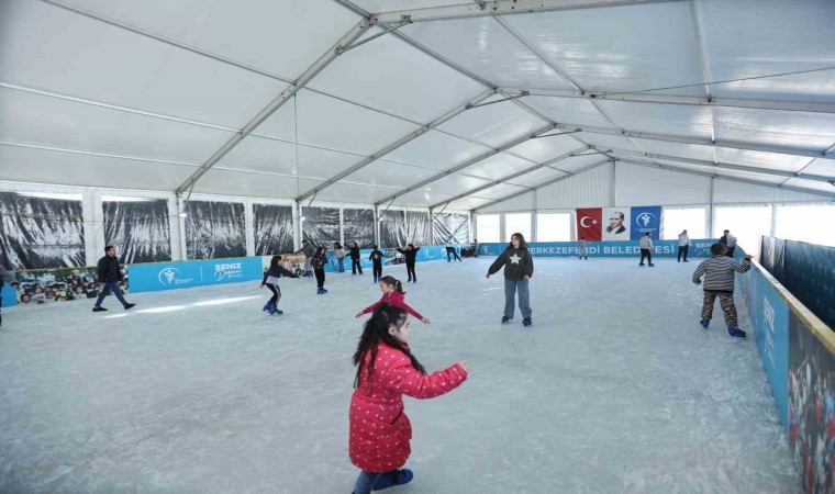 Merkezefendi Belediyesi’nin, çocukların tatil sevincini paylaşmak için Merkezefendi Kültür Merkezi’nin açık otoparkına kurduğu Buz Pateni Pisti’ne aileler ve çocuklar yoğun ilgi gösteriyor. Başkan Şeniz Doğan da çocukların eğlencesine ortak oldu.