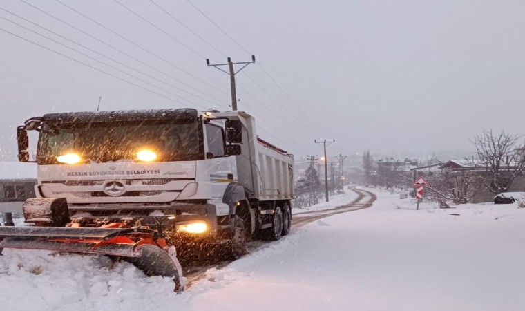 Mersin’in yüksek kesimlerinde etkili olan kar yağışları dolayısıyla, Mersin Büyükşehir Belediyesi Yol Yapım Bakım ve Onarım Dairesi Başkanlığı ekipleri, etkisini gösteren kar yağışı nedeniyle yollarda ulaşımın aksamaması için canla başla çalışıyor.