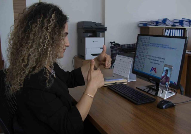 İşaret Dili Tercümanı olarak görev yapan Esra Bakırdöven, "İşaret Dili ile Görüntülü Destek ve Şikayet Hattı" hakkında şu bilgileri verdi: "İşitme engelli vatandaşlar, ihtiyaç duyduklarında 0 533 360 27 03 numaralı telefonu arayarak bizden destek alabiliyorlar. Kamu kurumlarına gittiklerinde, işaret dili bilen personel bulunmuyor veya işaret dili yaygın olarak kullanılmıyorsa, işitme engelli bireyler işaret dili tercümanlarına ihtiyaç duyuyorlar. Bu nedenle bizim destek hattımızı arıyorlar. Şebeke üzerinden ve WhatsApp üzerinden hizmet veriyoruz. Her türlü konuda yardımcı olmaya çalışıyoruz, hastane randevusu almak isteyenlerden işlemleriyle ilgili sıkıntı yaşayanlara kadar herkese destek sunuyoruz."