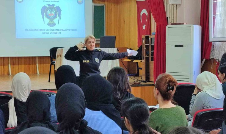 Mersin Emniyet Müdürlüğü ekipleri, Mezitli Kız İmam Hatip Anadolu Lisesi öğrencilerine yönelik bilgilendirme çalışması yaptı.