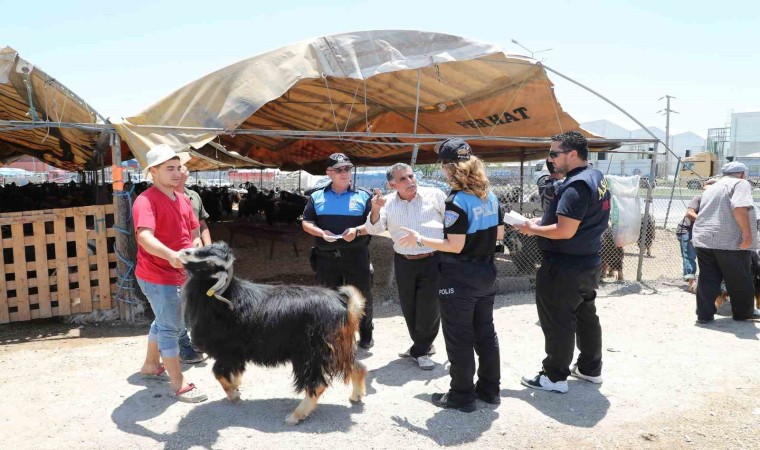 Mersin polisi, kurbanlık satış alanlarında vatandaşlara ve satıcılara yönelik bilgilendirme çalışması yaptı.