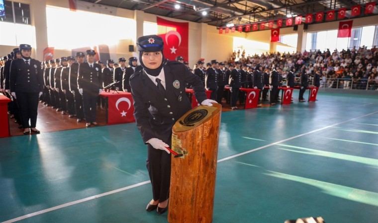 Vali Ali Hamza Pehlivan’ın dereceye giren polis adaylarına diploma ve ödüllerini takdim ettiği törende, 285 kadın polis memur adayı yemin ederek mezun oldu.