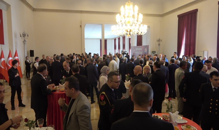 Vali Ali Hamza Pehlivan, Akdeniz Bölge ve Garnizon Komutanı Tuğamiral Murat Fırat ve Mersin Büyükşehir Belediye Başkanı Vahap Seçer, Şeref Salonu girişinde misafirleri karşılayarak tek tek bayramlaştı.