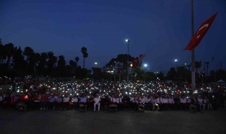 Cumhuriyet Meydanı’nda demokrasi nöbeti öncesi saygı duruşunda bulunuldu ve İstiklal Marşı okundu. Kur’an-ı Kerim tilavetinin ardından İl Müftüsü Aydın Yığman şehitler için dua etti. Meydana yerleştirilen sahnede 15 Temmuz’un yıl dönümü nedeniyle kısa film gösterimi yapılan etkinlikte 15 Temmuz gazisi Mustafa Karakoç ile AK Parti Mersin Milletvekili Ali Kıratlı konuşma yaptı.