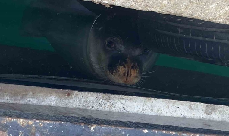 Deniz kaplumbağalarının uğrak yeri olan Erdemli Balıkçı Barınağı’na daha önce de Akdeniz foku gelerek, bir süre deniz üzerine hareketsiz durarak güneşlenmişti.