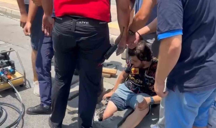 Mersin’de bacağı beton mazgala sıkışan genç, itfaiye ekipleri tarafından kurtarıldı.