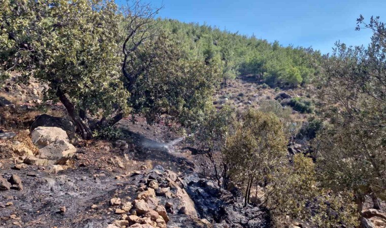 Ormana sıçramadan söndürülen ancak 3 dönüm alanın zara gördüğü yangın bölgesinde soğutma çalışmasının sürdüğü bildirildi.