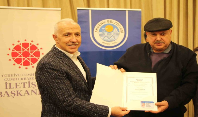 Mersin’de, Cumhurbaşkanlığı İletişim Başkanlığı Adana Bölge Müdürlüğü ve Akdeniz Belediyesi işbirliğinde yerel ve ulusal basın mensuplarına yönelik düzenlenen ’İHA-1 Ticari Pilot Lisansı’ eğitimini tamamlayan basın mensuplarına sertifikaları törenle verildi.