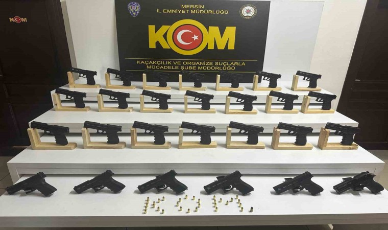 Mersin’de silah ticareti yaptığı tespit edilen bir şüpheliye ait depoda yapılan aramada, 27 adet seri numarası kazınmış ruhsatsız tabanca ele geçirildi.