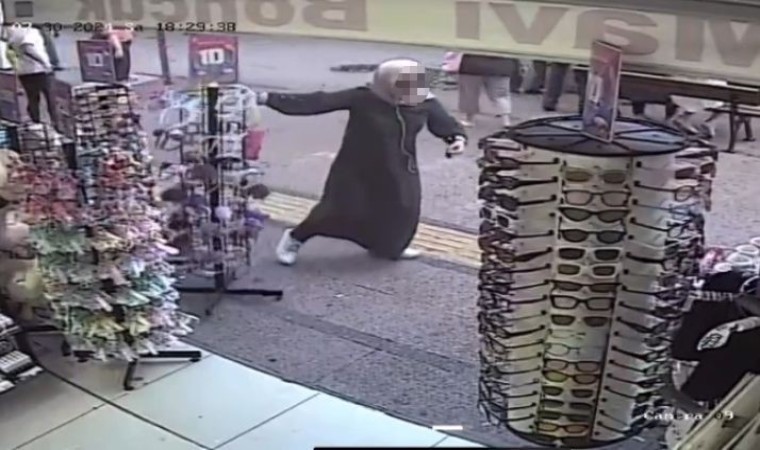 Mersin’de bir kadının, birçok esnafa ait stant ve tezgahta bunulan ürünleri dağıtarak kaçması güvenlik kameralarınca kaydedildi.