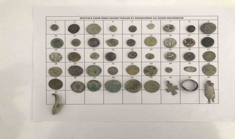 Mersin’in Mut ilçesinde jandarma ekiplerinin yaptığı çalışmada Roma ve Bizans dönemlerine ait sikke, kolye ve yüzükten oluşan 46 parça tarihi eser ele geçirildi.