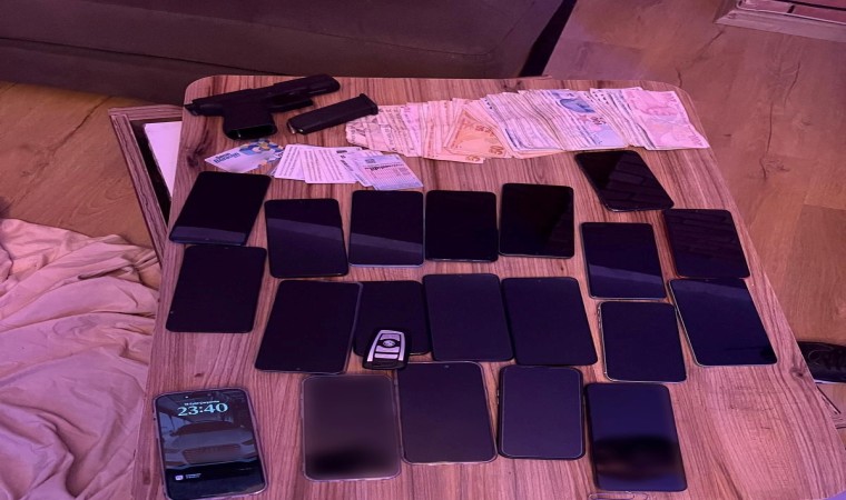Şüphelilerin adreslerinde yapılan aramalarda, dolandırıcılık olaylarında kullanılan 21 cep telefonu, çok miktarda uyuşturucu hap, 11 bin lira, başkalarına ait banka kartları, 6 adet açık telefon hattı diye tabir edilen sim kart, sahte polis kimliği ve 1 ruhsatsız tabanca ele geçirildi.