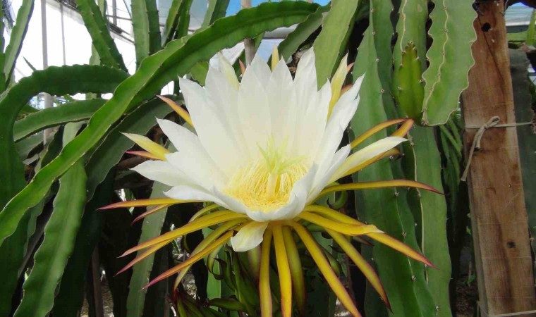 Dondurma yapımı, salata ve ilaç sanayilerinde kullanılan, ağırlığı 300 gramdan 1 kilograma kadar çıkabilen tropikal bir meyve olan pitayanın, haziran başından itibaren çiçek açmaya başladığına değinen Önal, meyvelerinin 50 günde olgunlaştığını söyledi.