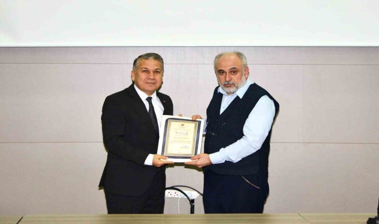 Konuşmanın ardından Rektör Prof. Dr. Erol Yaşar tarafından Prof. Dr. İhsan Fazlıoğlu’na günün anısına teşekkür belgesi takdim edildi.