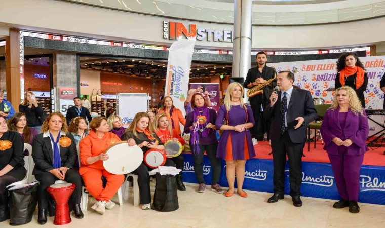 Konuşmaların ardından Yenişehir Kent Konseyi Ritim Topluluğu, Ece Öngeç’in şefliğinde ve Mersin Kent Orkestrası sanatçıları eşliğinde performans sergiledi. Etkinlik alanına gelen katılımcımlar da ellerine sürdükleri turuncu ve mor boyalarla farkındalık panosuna baskı yaparak, kadına karşı şiddet karşısında tepkilerini dile getirdiler.