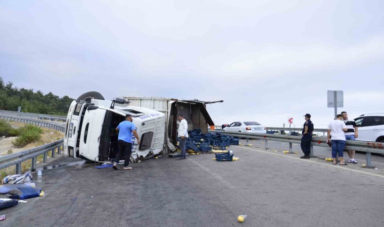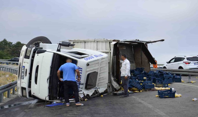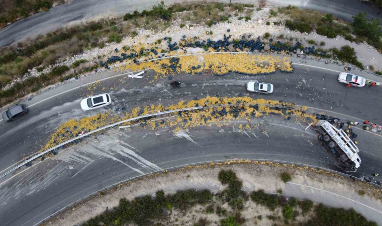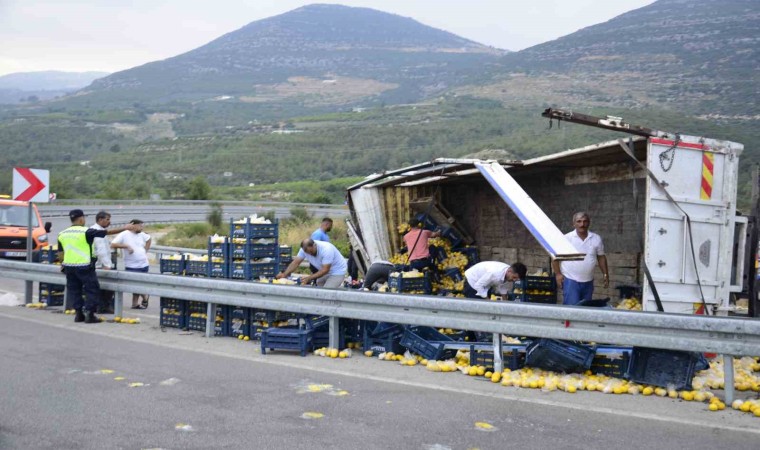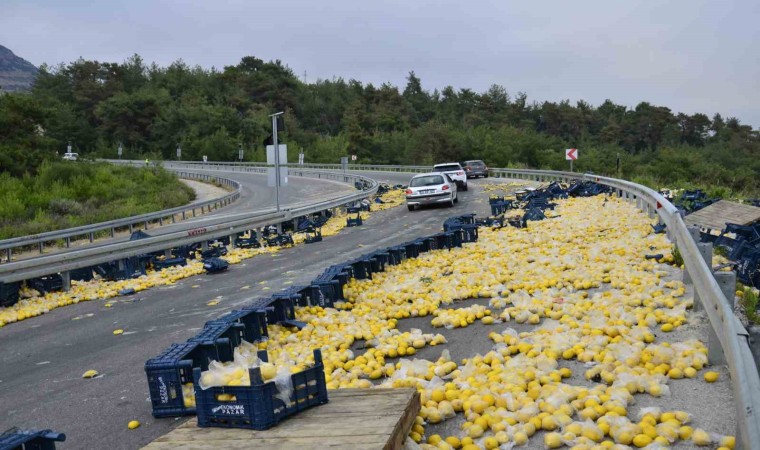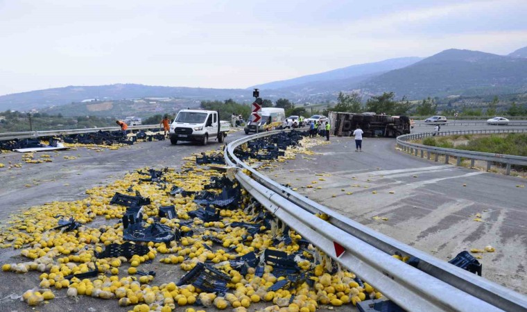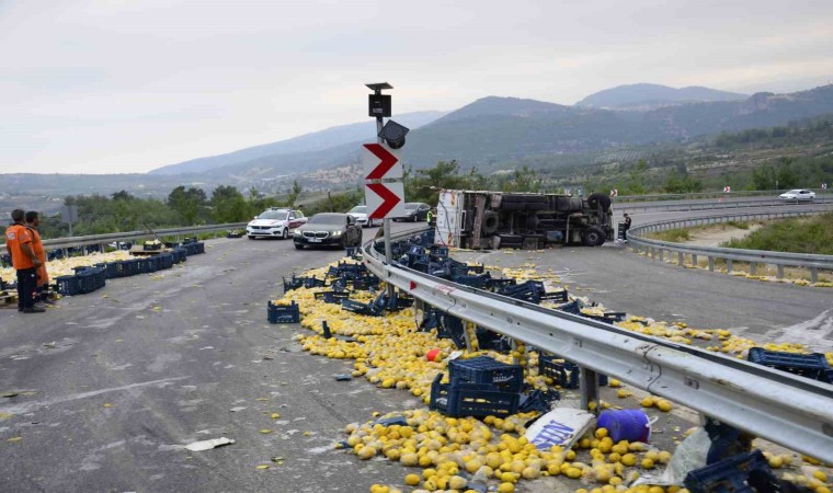 Yola saçılan limonlar gelen işçiler yardımıyla toplanırken, kamyon çekici vasıtasıyla kaldırıldı. Olayla ilgili soruşturmanın sürdüğü bildirildi.