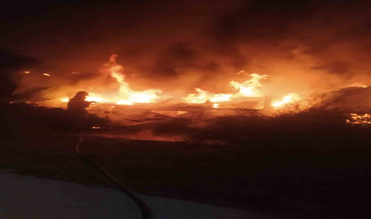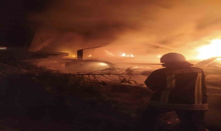 Mersin’in Tarsus ilçesinde refüje çıkan tır, yanarak kullanılamaz hale geldi.