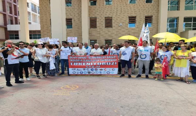 Soner AYDIN/MERSİN, (DHA)- MERSİN'de sağlık çalışanları çalışma koşullarının iyileştirilmesi ve ücretlerin düzenlenmesi talebiyle iş bırakma eylemi yaptı.