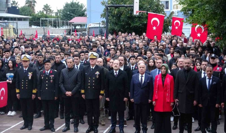 Anma törenine, Vali Ali Hamza Pehlivan’ın yanı sıra, Akdeniz Bölge ve Garnizon Komutanı Tuğamiral Murat Fırat, İl Milli Eğitim Müdürü Fazilet Durmuş, İl Jandarma Komutanı Tuğgeneral Ercan Atasoy, İl Emniyet Müdürü Mehmet Aslan, diğer protokol üyeleri, öğretmenler ve öğrenciler katıldı.