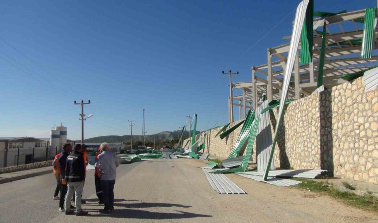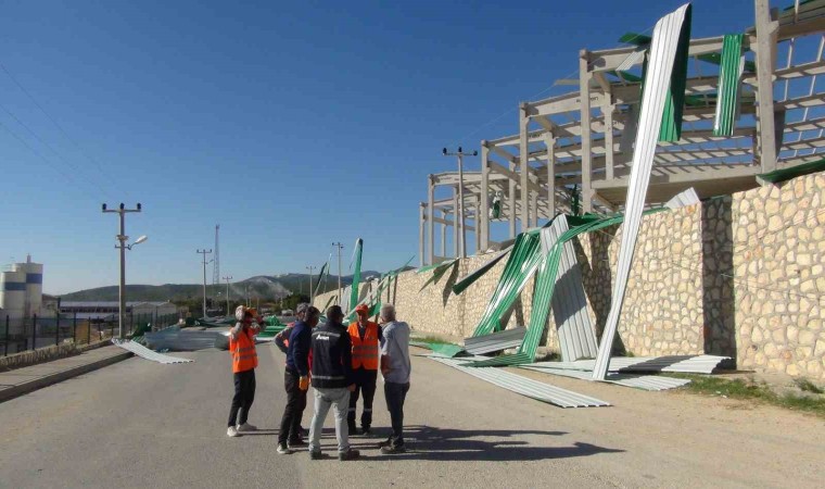 Mersin’in Silifke ilçesinde organize sanayi bölgesinde inşaat aşamasındaki bir fabrikanın çatısı şiddetli rüzgar nedeniyle uçtu.