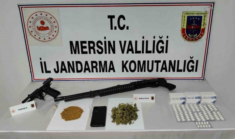Alınan bilgiye göre, İl Jandarma Komutanlığı ekiplerince yapılan çalışmada Tarsus, Silifke ve Çamlıyayla ilçelerinde 4 şüphelinin uyuşturucu madde ticareti yaptığı tespit edildi. Takibe alınan şüpheliler yakalanarak gözaltına aldı. Yapılan aramalarda ise 1 kilo 648 gram bonzai, 607 gram kubar esrar, 107 gram metamfetamin, 108 adet uyuşturucu hap, 1 hassas terazi, 5 uyuşturucu madde kullanma aparatı ile 1 tabanca, 1 av tüfeği, bıçak ile nakit para ele geçirildi.
