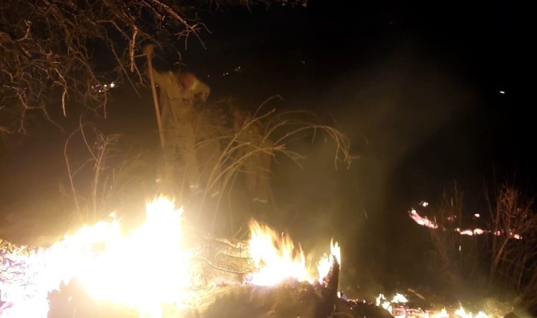 Bölgede ekiplerin soğutma çalışması sürerken yaklaşık bir hektarlık ormanlık alanın zarar gördüğü öğrenildi.