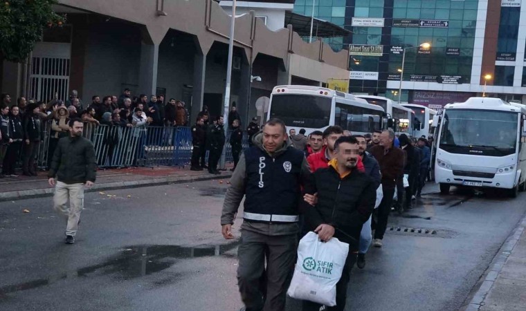 Mersin’de ’zincir’ adı verilen rüşvet operasyonunda gözaltına alınan ve aralarında kamu görevlilerinin de bulunduğu 114 şüpheli, emniyetteki işlemlerinin tamamlanmasının ardından adliyeye sevk edildi.