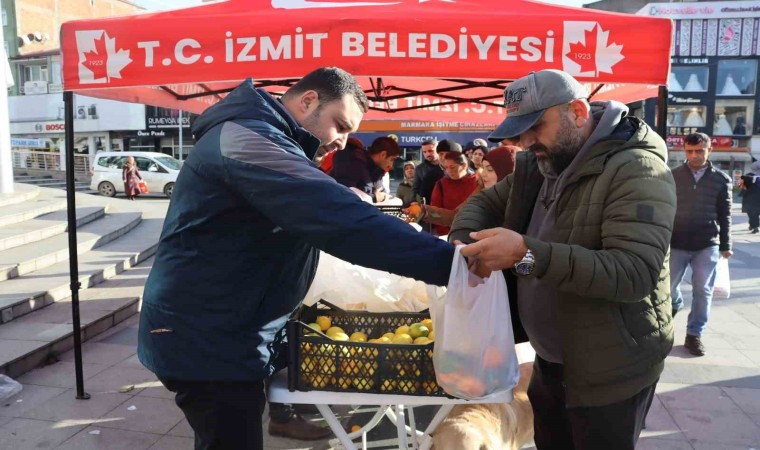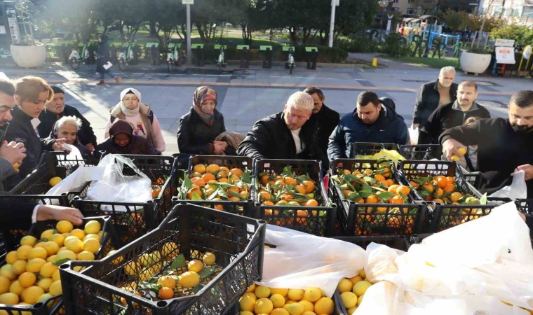Mersin Mezitli Belediyesi’nin gönderdiği limon ve mandalinalar İzmit’te vatandaşlara ve öğrencilere dağıtıldı.