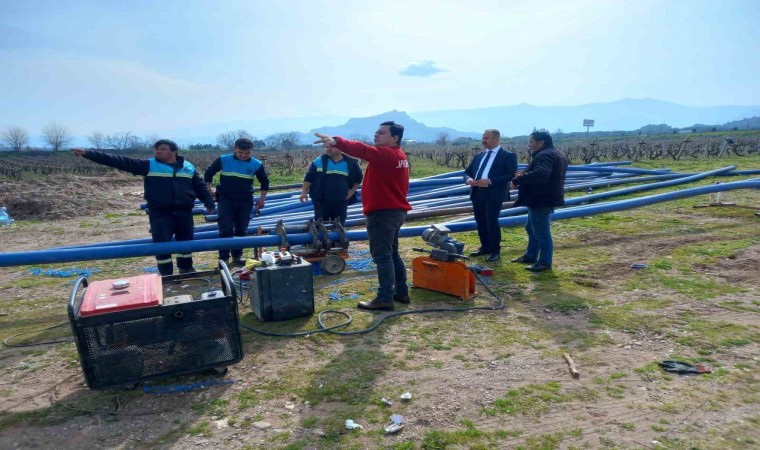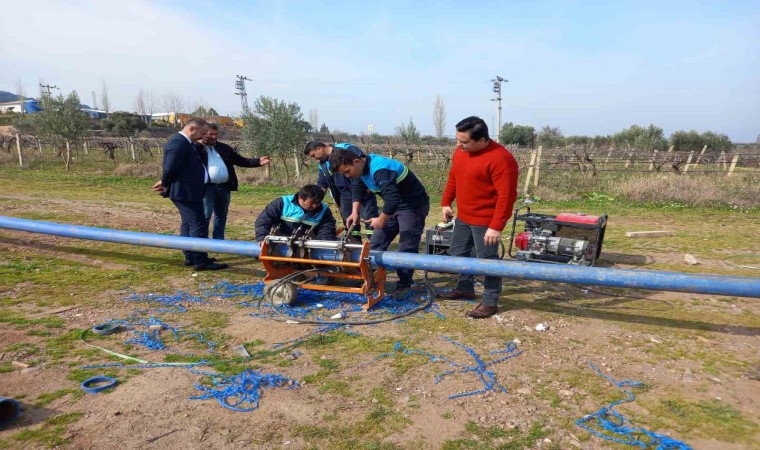 Manisa Su ve Kanalizasyon İdaresi (MASKİ) Genel Müdürlüğü, vatandaşlara daha sağlıklı içme suyu sunmak adına il genelinde çalışmalarını sürdürüyor. Bu kapsamda İçme Suyu Dairesi Başkanlığı ekipleri Salihli’ye bağlı Mersindere mahallesinde yeni açılan sondajın bağlantısının yapılması için 1.5 kilometrelik içme suyu terfi hattı döşeme çalışması başlattı. Pompa bağlantıları ve elektrik işlerinin de tamamlanması ile birlikte yeni sondaj faaliyete alınacak. Çalışmaları Büyükşehir Belediyesi Muhtarlık İşleri Salihli Şube Müdürü Mustafa Gün, MASKİ İlçe Şefi Tuğrul Kacar ve mahalle muhtarı Ali Sağlam yerinde takip etti.