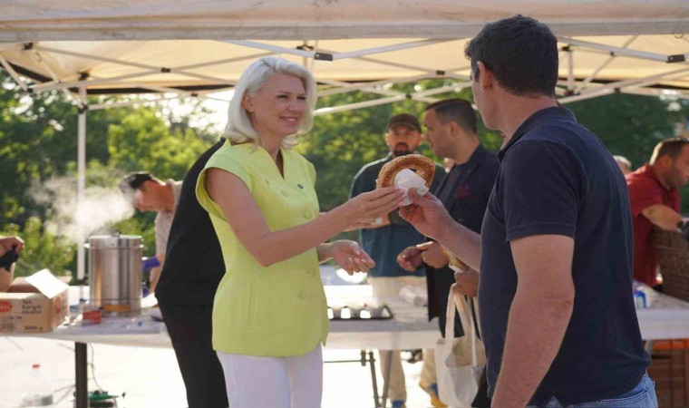 Bilecik Belediye Başkanı Melek Mızrak Subaşı, mesaiye işçilere simit ikram ederek başladı.