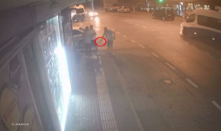 Cadde üzerindeki bir lastikçi dükkanın önünde buluşan ikili tartışmaya başladı. Kısa sürede büyüyen tartışma sonrası, A.B.’nin bıçak çekmesiyle M.U. araçtan aldığı tabanca ile, dükkan önünde bekleyen kişinin bacağına arka arkaya ateş etti. Sinirini alamayan şüpheli, kanlar içinde kalan adamın üzerine çıkıp yumrukla darp etti. Çevredekiler panik halinde 112 ekiplerini aradı. Şüpheli aracıyla olay yerinden kaçarken, sağlık ekipleri yaralıya olay yerinde yaptığı ilk müdahalenin ardından Çekirge Devlet Hastanesine sevk etti. Polis ekipleri, tahkikat başlatırken, şüpheliyi çok geçemeden yakaladı. Gözaltına alınan şüphelinin emniyetteki işlemleri devam ederken, kavga anı kameraya saniye saniye yansıdı.