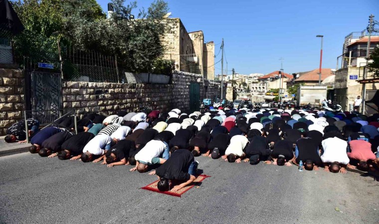 İsrail ve Filistin’deki çatışmalar 28 gündür devam ederken, İsrail güçleri cuma namazı öncesi Müslümanlara yönelik müdahalelerini sürdürüyor. İşgal altındaki Doğu Kudüs’ün Eski Şehir bölgesinde yer alan Mescid-i Aksa’da çatışmaların başlamasından bu yana 4’üncü cuma namazı kılındı. Filistinlilerin bir kısmı İsrail’in sıkı denetimi ve yaş kısıtlaması altında Mescid-i Aksa’ya alınırken, bir kısmı da Mescid-i Aksa çevresinde sokaklarda namaz kıldı. İsrail polisi ve askerleri, ibadet etmelerini engellediği Müslümanlara gaz bombası ve tazyikli suyla müdahale etti.