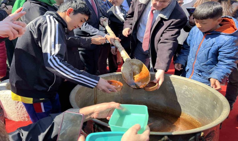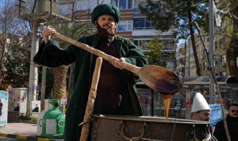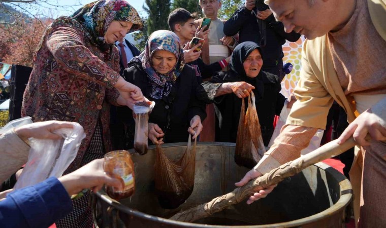 Manisalılar kazanda karılan mesirden almak için birbirleriyle yarıştı