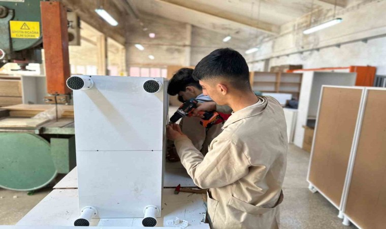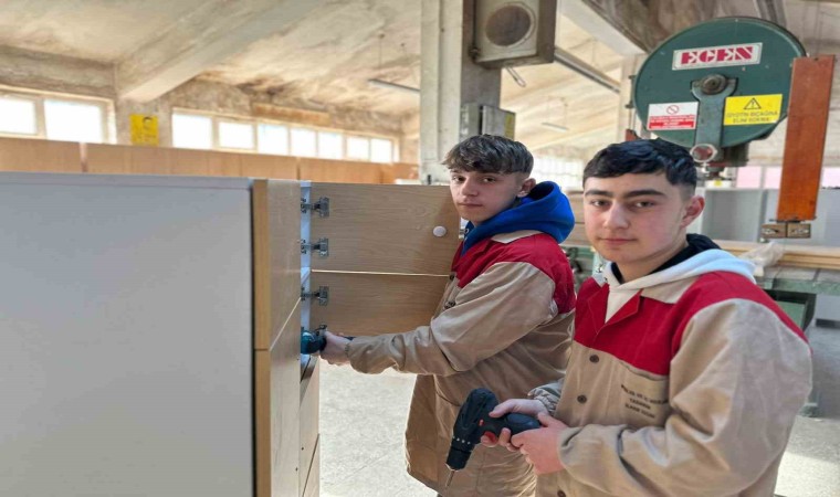Okulda mobil ve iç mekan tasarımı alanında okuyan Yunus Emre Seven, "Burada dolap, masa, sandalye gibi birçok ürün üretiyoruz. Bu bölümü bilerek seçtim ve hem de baba mesleğidir. Devam ettirmeye çalışacağım" diye konuştu.