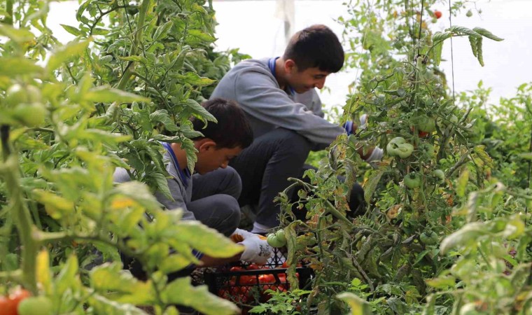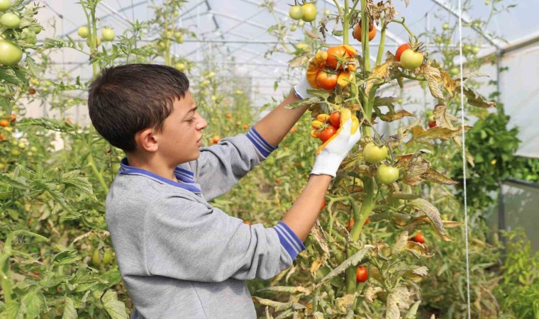 Öğrencilerde tarım bilincini geliştirmek ve üretim konusunda farkındalık oluşturmak amacıyla üretime başlanan serada üretilen mahsuller toplanmaya başlandı.