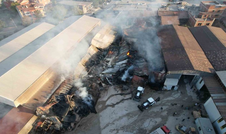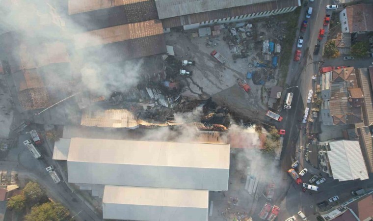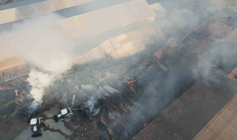 Denizli’de metal ve izolasyon fabrikasında çıkan ve kentin tamamında görülebilen yangın kısmen kontrol altına alındı. Ekiplerin söndürme çalışmaları dron ile havadan görüntülendi.
