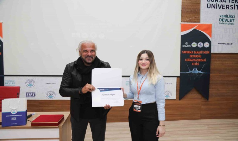 Güvenlik Politikaları Uzmanı Mete Yarar, Bursa Teknik Üniversitesi’nde “Savunma Sanayii’mizin Ortadoğu Coğrafyasındaki Etklileri” konulu konferans verdi. BTÜ İnsan ve Toplum Bilimleri Fakültesi (İTBF) Dekanı Prof. Dr. Hilal Yıldırır Keser ile birlikte çok sayıda akademisyenin, sivil toplum kuruluşu temsilcisinin ve öğrencilerin katıldığı programın başında milli muharip uçağı Kaan’ın tanıtım videosunun gösterime sunuldu.