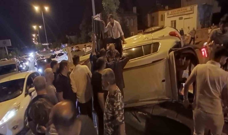 Melikgazi ilçesinde meteor yağmurunu izlemek için Erciyes Dağı’na giden Selahattin Can O.’nun (25) kullandığı 38 UV 963 plakalı otomobil, aynı yolda seyreden Halil Z. (55) idaresindeki 07 GFL 91 plakalı otomobile çarptı. Çarpışmanın şiddetiyle devrilen otomobilde Halil Z. ile eşi Hatice Z. (61) sıkıştı. Diğer otomobilde bulunan sürücü Selahattin Can O. ile Osman A. (23) ağır yaralanırken, Osman Vefa A. (26) ise hafif yaralandı. Kazayı gören vatandaşlar otomobilde sıkışan çifti kurtarmak için seferber olurken, bir vatandaş da elindeki baltayla otomobilin camlarını kırdı. İhbar üzerine olay yerine çok sayıda sağlık, polis ve itfaiye ekipleri sevk edildi. Polis ekipleri çevrede güvenlik önlemi alırken, yaralılar da ambulanslarla çeşitli hastanelere kaldırılarak tedavi altına alındı. Kazaya karışan araçlar çekici ile kaldırıldı.